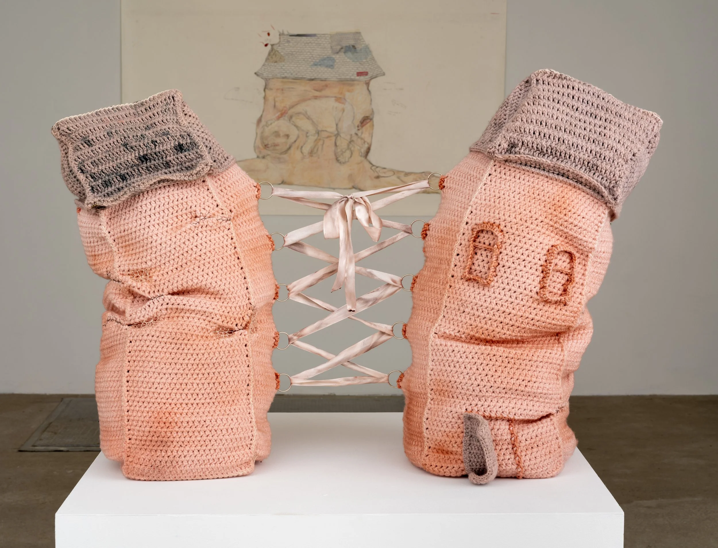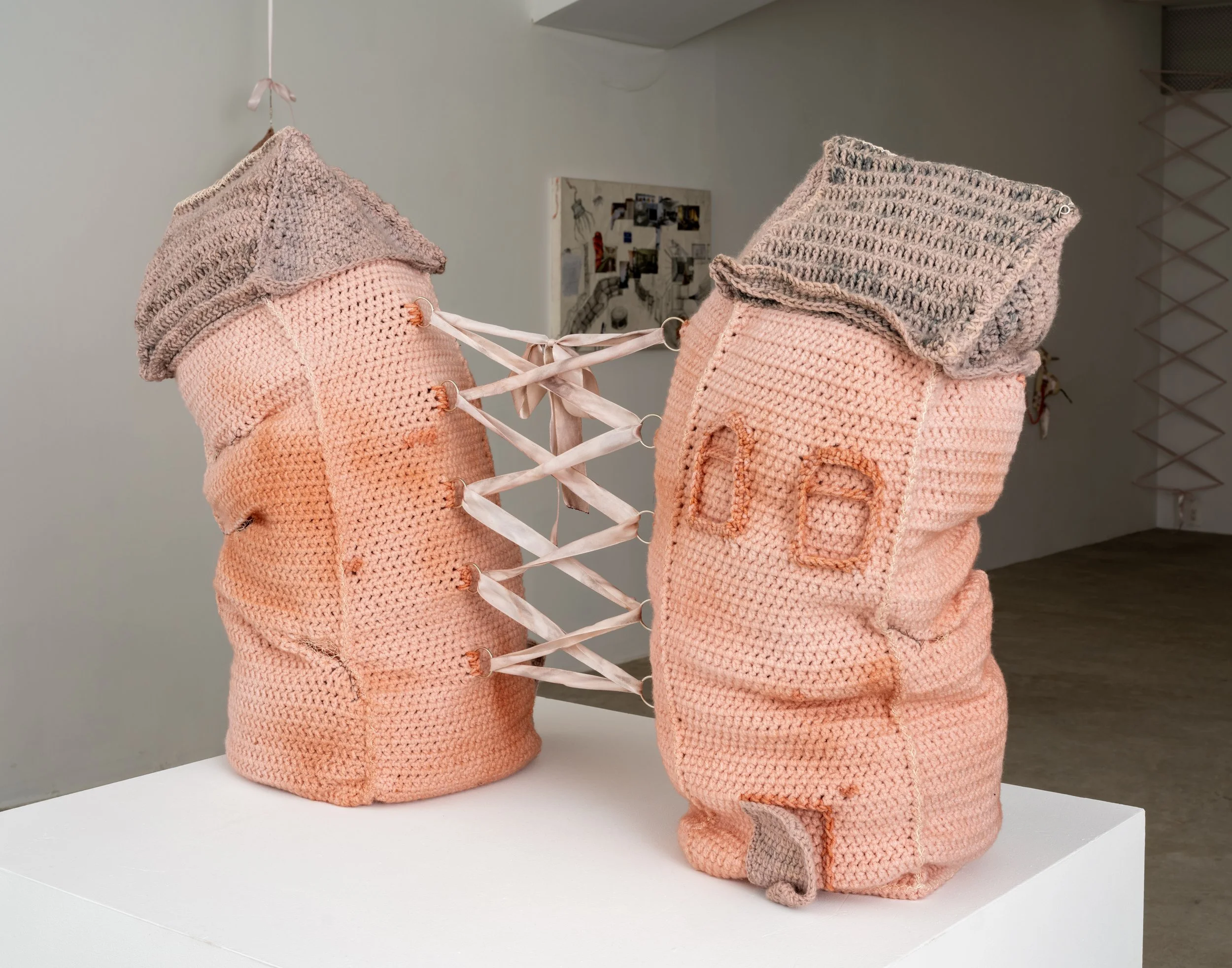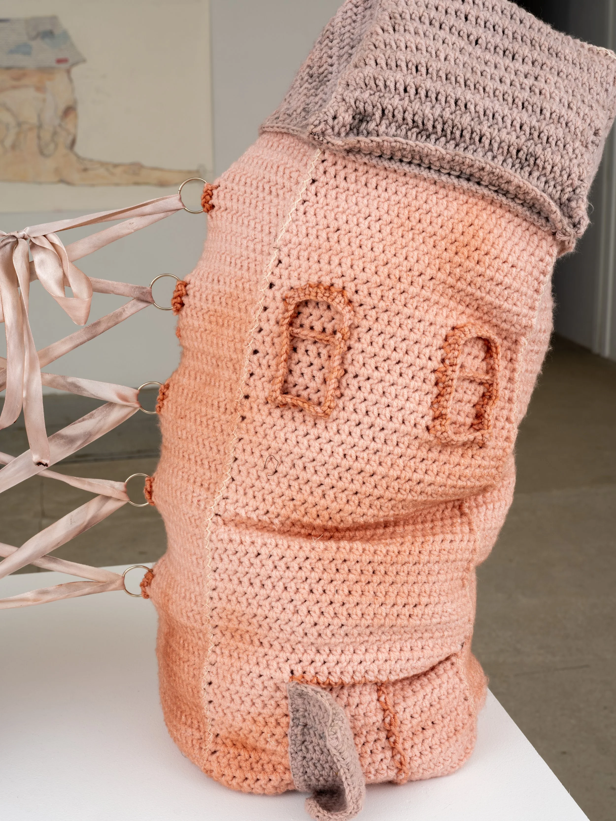 materials: hand dyed yarn, hand dyed ribbon, thread, tulle and book rings